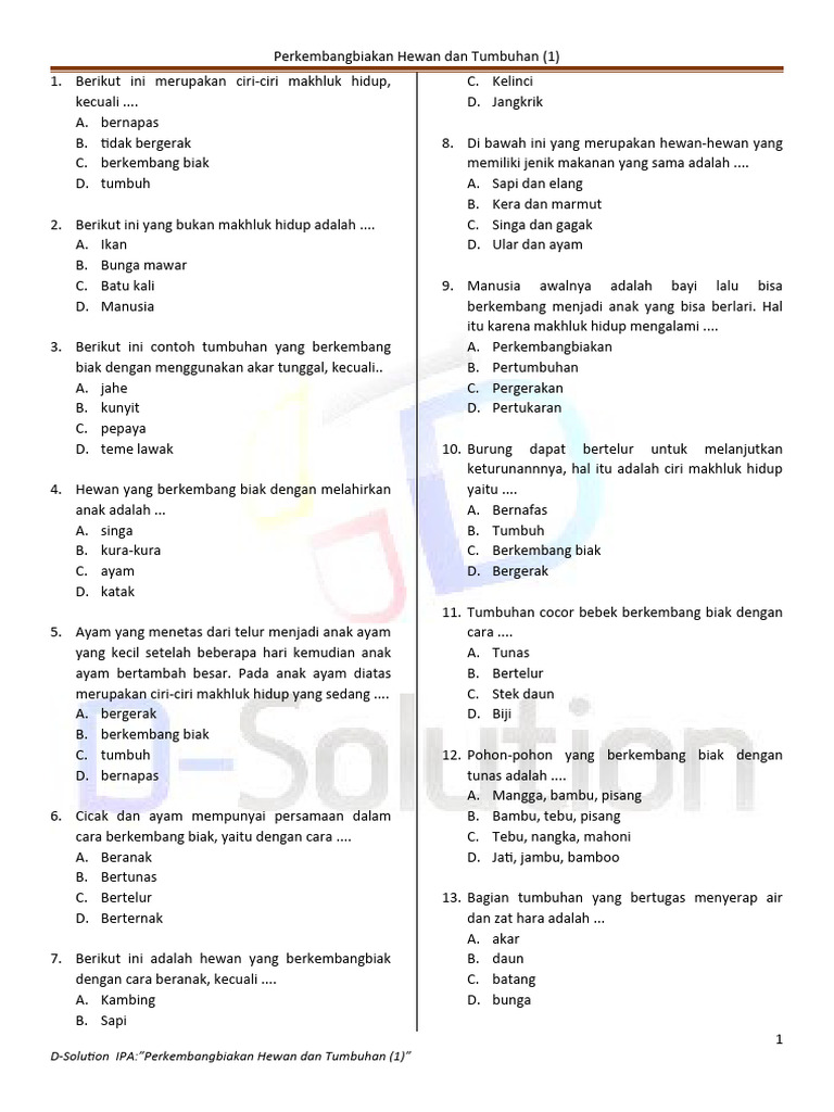 Tumbuhan adalah makhluk hidup yang luar biasa. Mereka ada di sekitar kita, memberikan udara segar yang kita hirup, makanan yang kita makan, dan keindahan yang menyejukkan mata. Bagi siswa kelas 3 SD, mempelajari tentang tumbuhan adalah langkah awal yang penting untuk memahami ekosistem dan pentingnya menjaga alam. Melalui soal-soal IPA yang menarik, pemahaman mereka tentang dunia tumbuhan akan semakin terasah. Artikel ini akan membahas berbagai aspek tumbuhan yang relevan untuk siswa kelas 3 SD, dilengkapi dengan contoh-contoh soal yang dapat membantu mereka belajar.