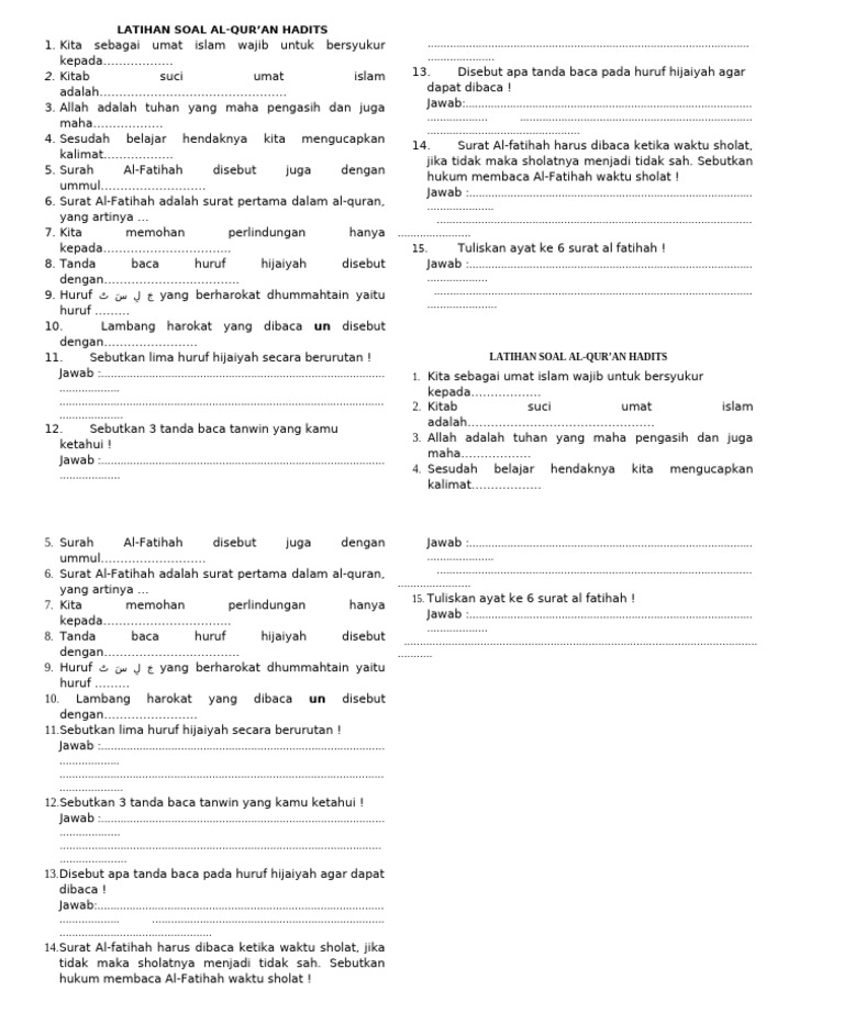 Contoh Soal Qurdis Kelas 1 Semester 2