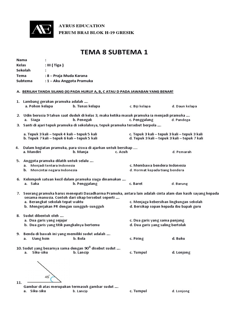 Artikel ini akan membahas secara mendalam tentang soal-soal Pramuka yang relevan untuk siswa kelas 3 SD. Kami akan mengulas materi-materi dasar, contoh soal, serta tips dan trik untuk mempersiapkan diri menghadapi ujian atau kegiatan Pramuka lainnya. Selain itu, artikel ini juga akan memberikan ide-ide aktivitas Pramuka yang menarik dan edukatif untuk diterapkan di sekolah maupun di lingkungan rumah.